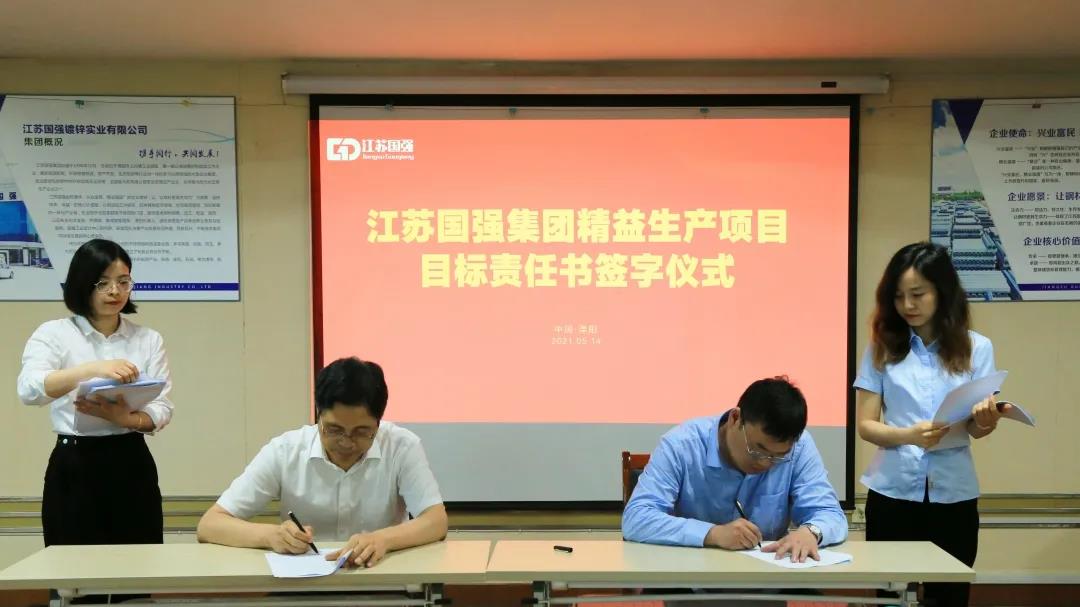 會(huì)上,董事長(zhǎng)與各專(zhuān)項(xiàng)小組組長(zhǎng)簽訂了精益生產(chǎn)項(xiàng)目目標(biāo)責(zé)任書(shū)。