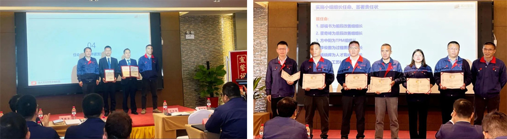 啟動(dòng)會(huì)現(xiàn)場(chǎng),公司高層向遠(yuǎn)大方略項(xiàng)目組和各項(xiàng)目小組頒發(fā)了授權(quán)書及聘書,并帶頭在宣誓詞簽字,與大家一起進(jìn)行集體宣誓,進(jìn)一步堅(jiān)定了大家全心身投入變革的決心和信心。