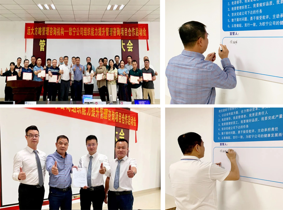 近日, 廣東順德歐寧科技電器有限公司(以下簡稱“歐寧科技”)攜手遠大方略啟動《組織能力提升》咨詢項目。優化公司組織架構,強化組織管理,升級員工思維,加強能力建設,促進生產管理效率,推動企業業績持續增長。