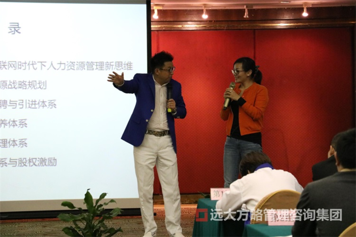 此次課程,我們很榮幸地邀請到了我們遠大方略人力資源模塊的合伙人張遠坤老師,張老師是智慧組織力、雙因子模式倡導者、人力資源管理實戰培訓顧問,其幽默的講課風格一度讓在座的“同學們”拍手稱絕。主持人由我們遠大方略的咨詢師劉建斌老師擔任。