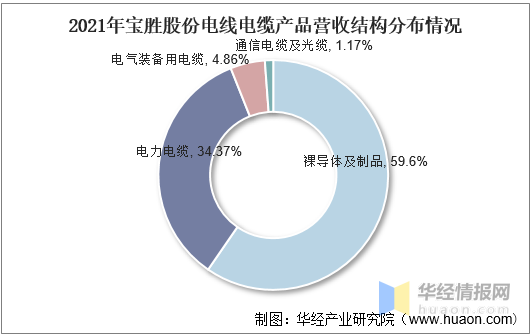 寶勝科技創新股份有限公司(簡稱寶勝股份)是中國航空工業集團公司旗下的上市公司,公司主要從事電線電纜及電纜附件開發、制造、銷售及相關的生產技術開發。公司產品覆蓋裸導體、電氣裝備用電纜、電力電纜、通信電纜及光纜等,是我國電線電纜行業主要龍頭企業之一。據資料顯示,2021年寶勝股份電線電纜產品業務營收為406.59億元,同比增長20.93%,毛利率為5.23%。