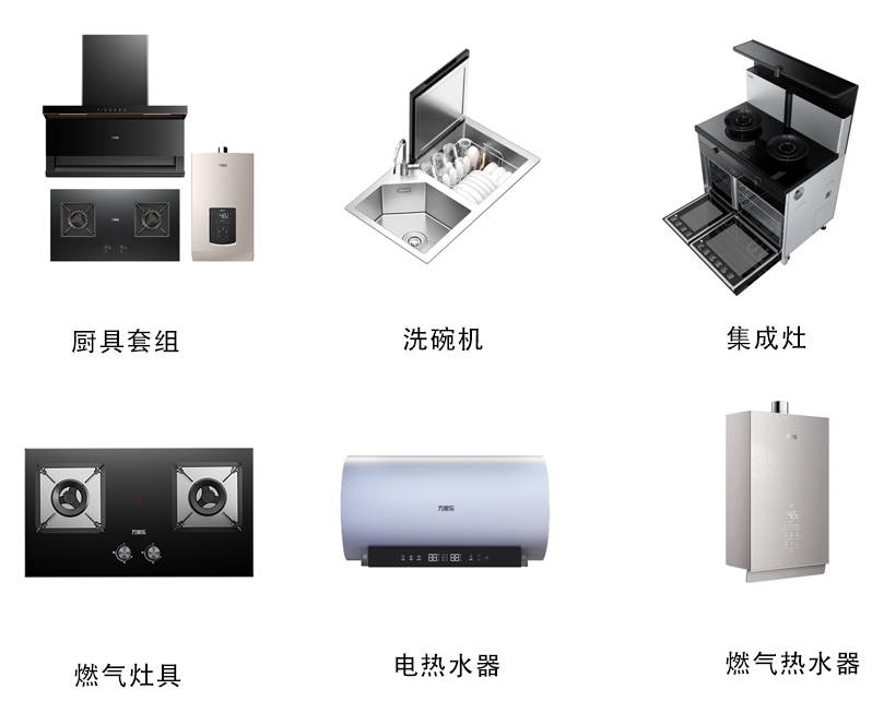 公司產(chǎn)品覆蓋熱水、廚電、凈水、采暖四大品類。包括熱水器、油煙機(jī)、燃?xì)庠睢⑾赐霗C(jī)、集成灶、凈水器、壁掛爐等。